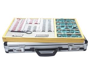 第一種方法是在我們的驗光鏡片箱中挑選出一片光學中心和幾何中心幾乎完全重合的球鏡片,然后將鏡片的一側(cè)緊靠可調(diào)檔板隨之一起移動,直到鏡片的棱鏡度為0,將儀器的可調(diào)檔板固定,你需要耐心的調(diào)試,直到鏡片幾個方向的棱鏡度都為0,這時可調(diào)檔板的位置就確定了。